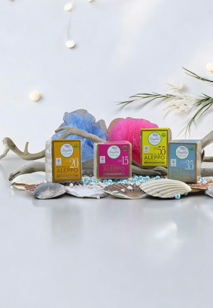 Il sapone di Aleppo Sarjilla è realizzato con ingredienti naturali di prima qualità, tra cui olio di oliva e olio di alloro puro. La nostra produzione segue i metodi tradizionali di Aleppo, garantendo un prodotto autentico e artigianale, privo di sostanze chimiche, conservanti e coloranti artificiali.